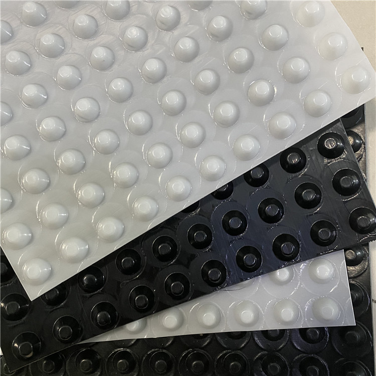 圓錐突臺(tái)的頂面膠接一層過濾土工布,以阻止泥土微粒通過,從而避免排水通道阻塞使孔道排水順暢。 傳統(tǒng)的排水方式使用磚石瓦塊作為導(dǎo)濾層、使用較多的鵝卵石或碎石作為濾水層、將水排到指定地點(diǎn)。而用排水板取代鵝卵石濾水層來排水則省時(shí)、省力又節(jié)能、節(jié)省投資、還能降低建筑物的荷載。