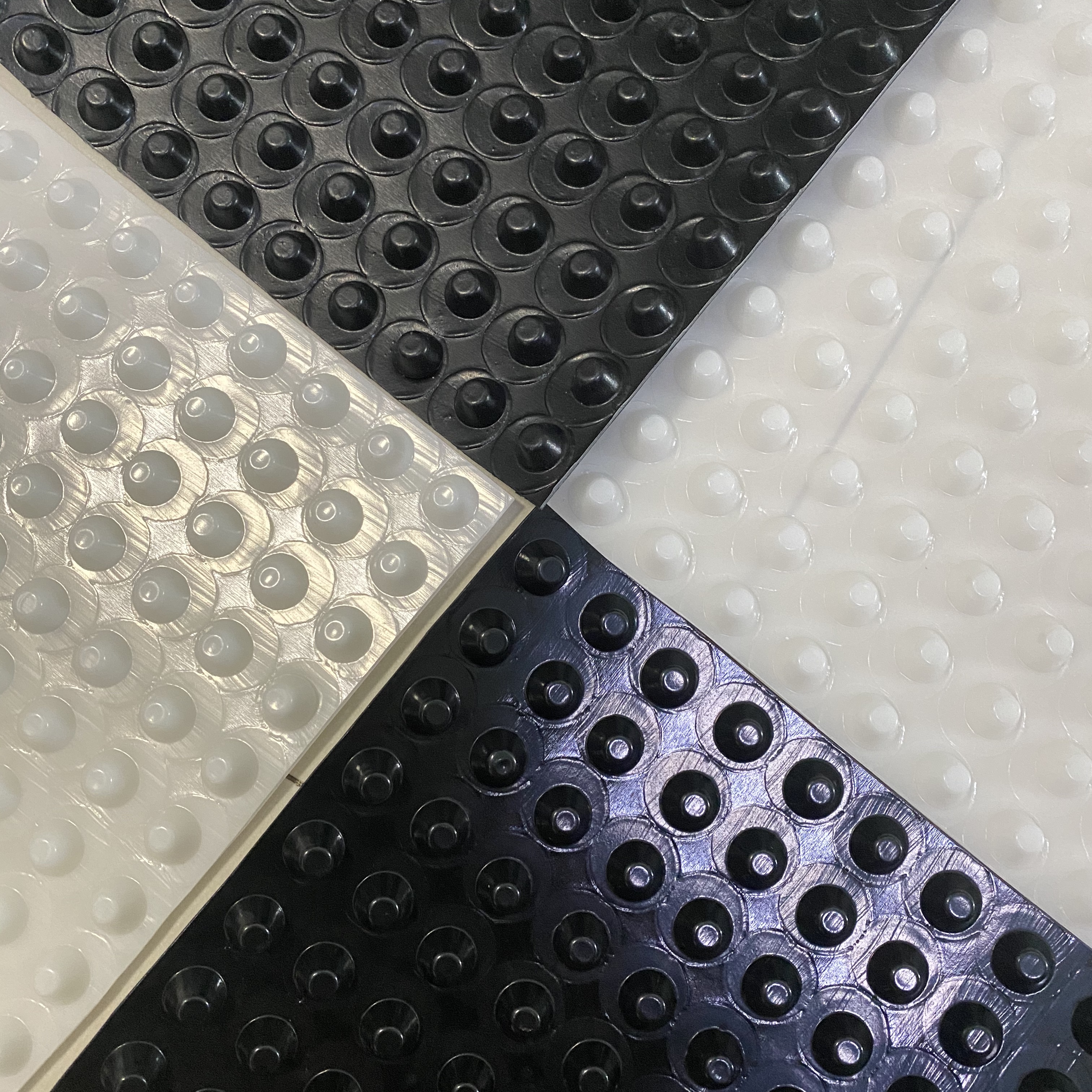 排水板 是由聚苯乙烯(HIPS)或者是聚乙烯(HDPE)為原料塑膠底板經(jīng)過沖壓制成圓錐突臺(tái)或者加勁肋的凸點(diǎn)(或中空?qǐng)A柱形多孔)而成,經(jīng)過不斷的創(chuàng)新研發(fā)原料得到巨大提升和變更,現(xiàn)由聚氯乙烯(PVC)為原料壓制而成,抗壓強(qiáng)度和整體平整度得到大幅度的提升,幅寬有1~3米,長度有4~10米或者以上。