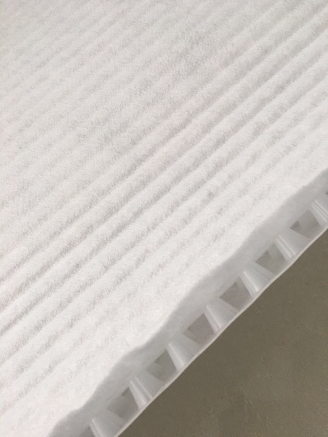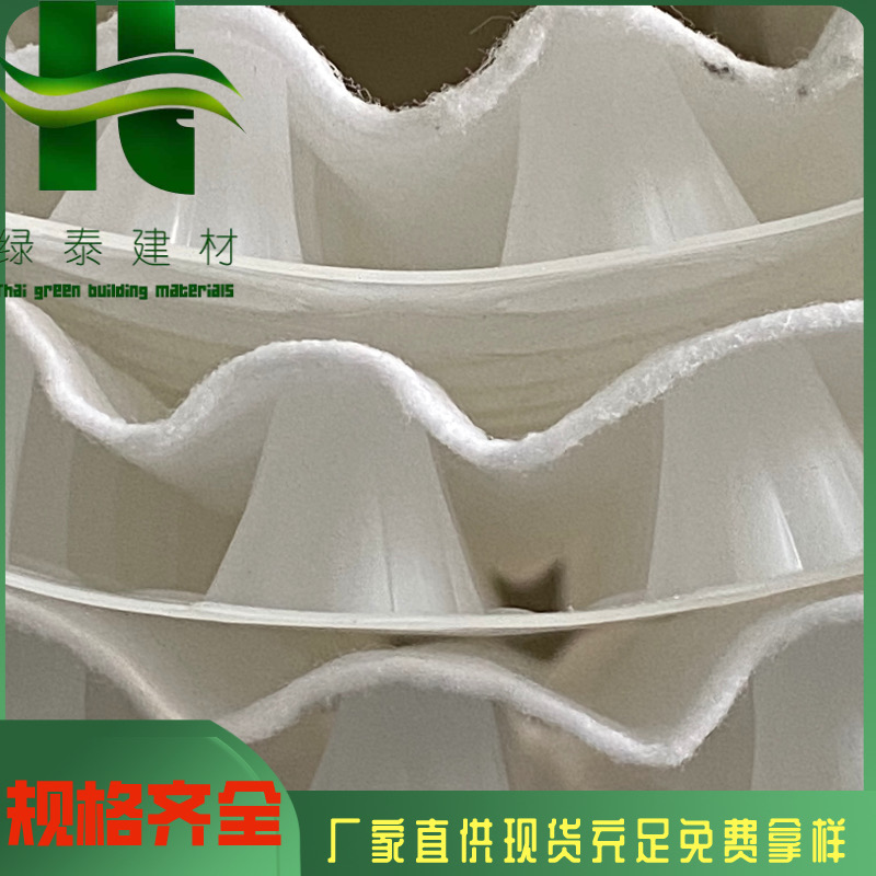 復(fù)合排水板(又名三維復(fù)合排水網(wǎng)、排水網(wǎng)格)是一種新型的排水土工材料。以高密度聚乙烯(HDPE)為原料,經(jīng)特殊的擠出成型工藝加工而成。具有三層特殊結(jié)構(gòu)。中間筋條剛性大,縱向排列,形成排水通道,上下交叉排列的筋條形成支撐防止土工布嵌入排水通道,即使在很高的荷載下也能保持很高的排水性能。雙面粘接滲水土工布復(fù)合使用,具有“反濾--排水--透氣--保護(hù)”綜合性能,是目前理想的排水材料。1、復(fù)合排水板是由一層或兩層無(wú)紡?fù)凉げ寂c一層不同結(jié)構(gòu)的三維合成土工網(wǎng)芯組成,具有排水隔離功能的復(fù)合結(jié)構(gòu)體;2、復(fù)合排水板應(yīng)用于地下車庫(kù)頂板種植、屋頂種植、地下側(cè)墻保護(hù)、排水,底板排水,隧道防水、排水,公路護(hù)坡,鹽堿地、沙漠種植、人工湖;3、復(fù)合排水板的應(yīng)用功能可隨意彎曲施工,快速排水防水層的靜水、HDPE土工膜積水,及時(shí)減輕主體結(jié)構(gòu)荷載,保護(hù)防水層和結(jié)構(gòu),避免遭受土壤回填,植物根刺、酸堿、地下昆蟲和微生物等對(duì)防水層的破壞。結(jié)合防水層使用,起到雙重防水防滲,使防水層隔絕氣體、防止氧化,大大提高防水系統(tǒng)的壽命。柔韌性材料,抗壓、抗拉強(qiáng)度高,滿足開裂縫所需的延伸率及行車道路的設(shè)施。經(jīng)久耐用的材料,滿足各種種植屋面使用,也可應(yīng)用老樓屋頂?shù)姆N植。施工簡(jiǎn)便,也可應(yīng)用于老樓屋頂?shù)姆N植。