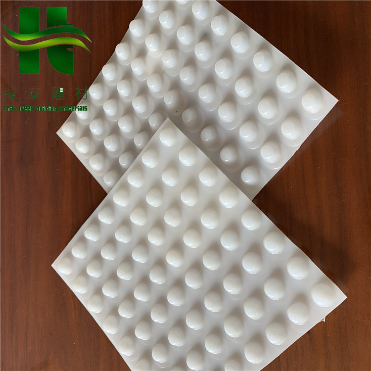 圓錐突臺的頂面膠接一層過濾土工布,以阻止泥土微粒通過,從而避免排水通道阻塞使孔道排水順暢。 傳統(tǒng)的排水方式使用磚石瓦塊作為導(dǎo)濾層、使用較多的鵝卵石或碎石作為濾水層、將水排到指定地點(diǎn)。而用排水板取代鵝卵石濾水層來排水則省時(shí)、省力又節(jié)能、節(jié)省投資、還能降低建筑物的荷載。